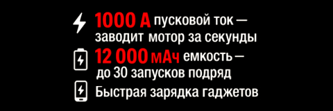 | Комплектация: | Пуско‑зарядный модуль с компрессором; Интеллектуальные клеммы с защитой от короткого замыкания; Воздушный шланг и насадки; USB‑кабель; Прочный кейс; Инструкция на русском |